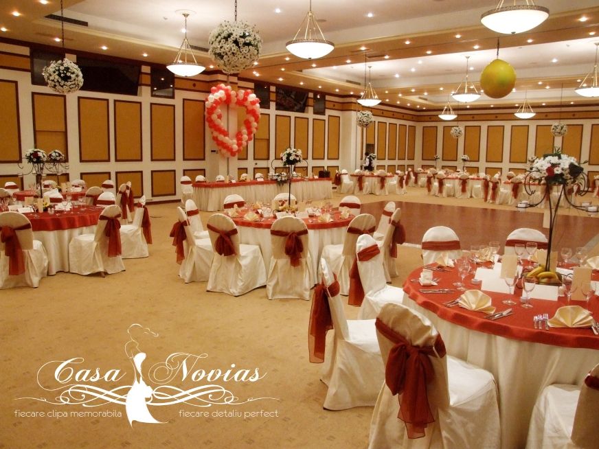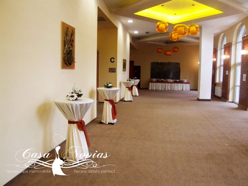 Dupa cum spune si titul acestui articol, ne-am ocupat de un eveniment la care au predominat margaretele. Acestea au fost prezente in aranjamentele de pe masa, pe suporti din fier forjat, in globurile agatate de tavanul salii si pe mesele de cocktail de pe hol.